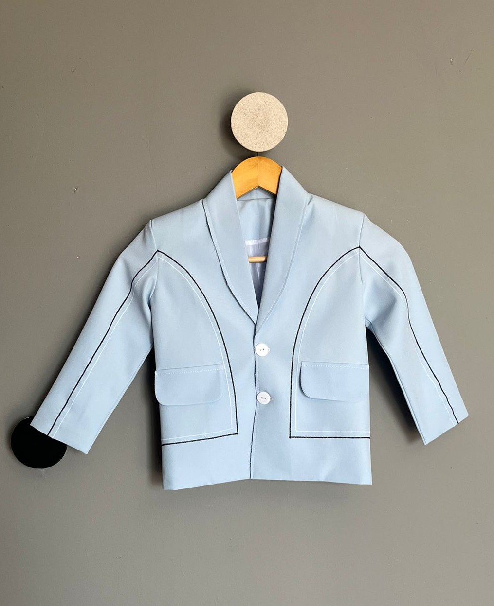 Sacou stofa calitate superioara detalii linii negre inchidere nasture.
